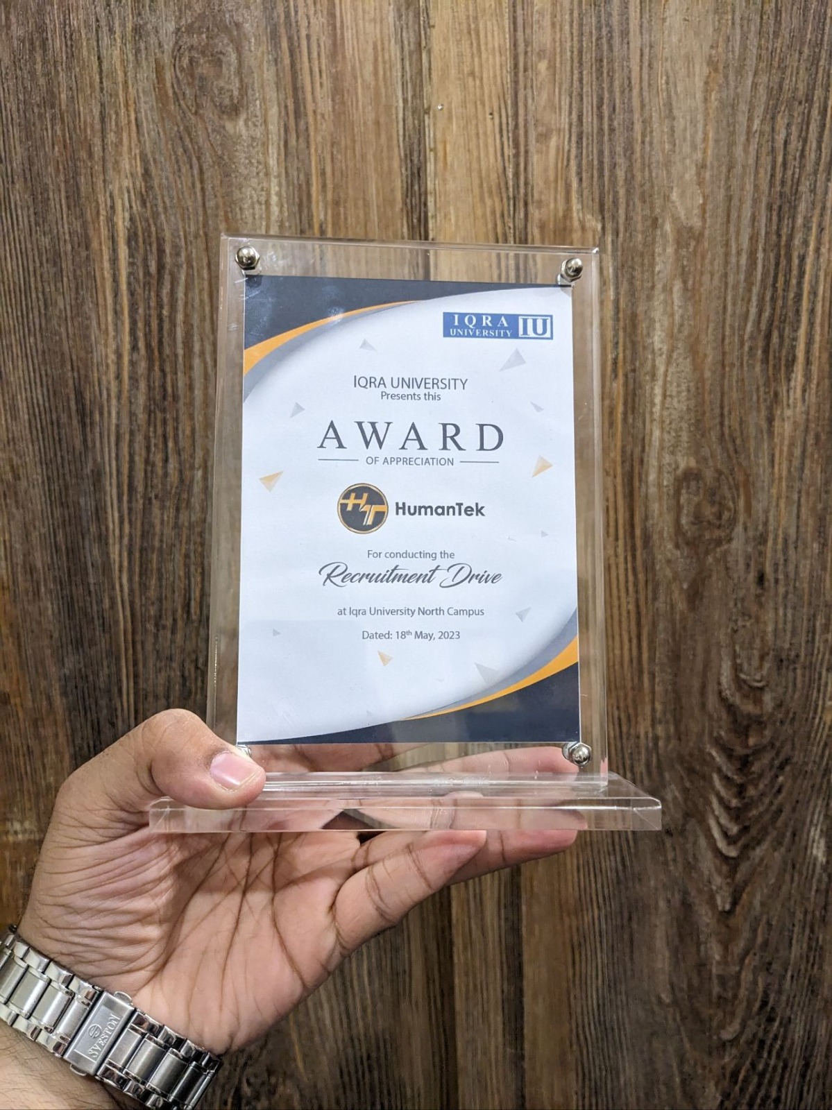 From a team of Operations to the Head Position, I Have received a lot of applause and acknowledgement from Humantek. A special thanks to Sir Hilal Anwar for always appreciating my efforts.